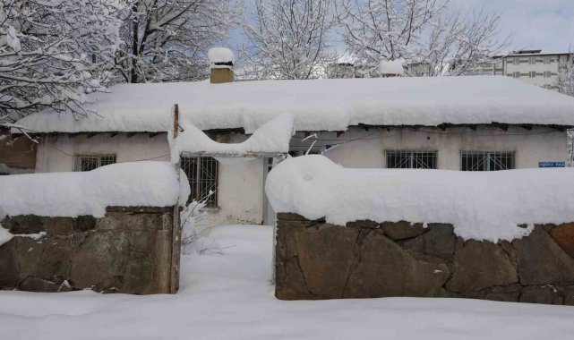 Bitlis'te günlerdir yağan kar yağışı nedeniyle tek katlı evler, arabalar ve yön levhaları kardan adeta kayboldu.