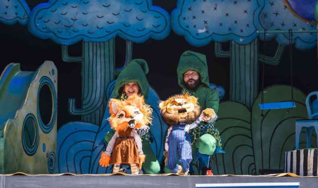 Yine üniversite otopark alanına kurulan ana sahnede, İzmir Devlet Tiyatrosu'nun sahneye koyduğu "Kral Olmak İstemeyen Aslan" adlı çocuk oyunu miniklerle buluştu. Çocuklar, tiyatro oyununu ilgiyle izledi.