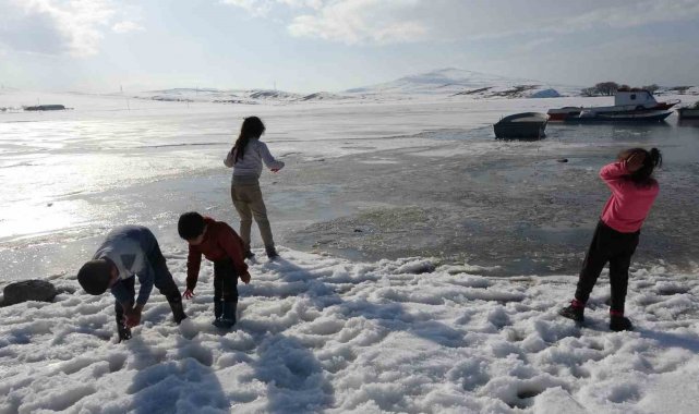 Kış aylarında şiddetli soğuklarla 40 santimetre kalınlığında buz tutan gölün yüzeyi mart ayının yaklaşmasıyla çözülmeye başlıyor. Göl yüzeyindeki buz tabakasının çözülmesiyle birlikte büyük kütleler halinde göl yüzeyinde yüzen buz parçaları ve arasında avlanmaya çalışan balıkçı tekneleri, seyrine güzel görüntüler oluşturdu.