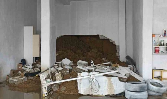 Edinilen bilgilere göre, yağışların ardından bölgede toprak kayması riski fark edilince polis ekipleri çevrede güvenlik önlemi aldı. Muhtemel bir tehlikeye karşı dükkan boşaltılırken, kısa süre sonra dağ yamacından kopan heyelan büyük bir gürültüyle iş yerinin üzerine sürüklendi. Toprak yığını dükkanı tamamen kaplarken, yapı kullanılamaz hale geldi.