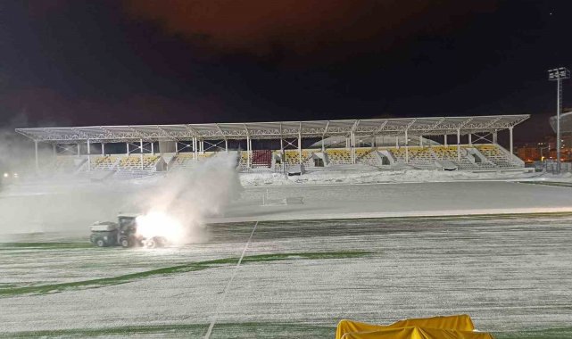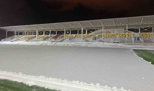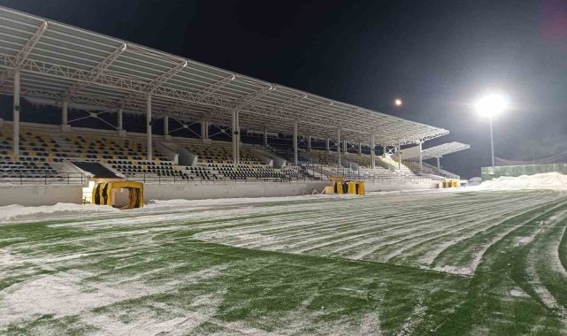 Bitlis'te etkili olan yoğun kar yağışı sonrası karla kaplanan Eren Stadyumu, oynanacak karşılaşma öncesinde temizlenerek hazır hale getirildi.