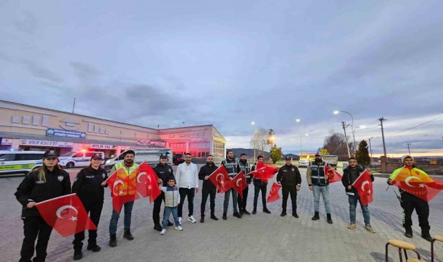 Güroymak Şehirler Arası Otobüs Terminali'nde yazıhane işletmeciliği yapan Şenol Gez, ilçede görev yapan polis ekipleri için sürpriz bir organizasyon düzenledi. Otogarda kavga olduğunu ihbar eden Gez, gelen polisleri ellerinde Türk bayrakları bulunan çocuklarla birlikte karşıladı.
