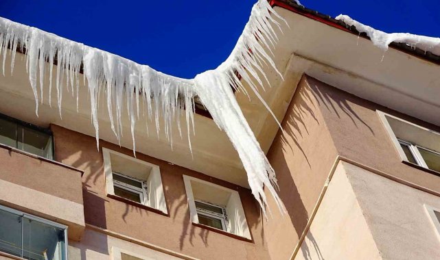 Özellikle yaya ve araç trafiğinin yoğun olduğu cadde ve sokaklarda büyük risk oluşturan buz sarkıkları, vatandaşları tedirgin ediyor.