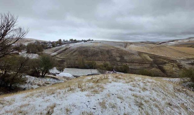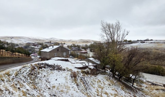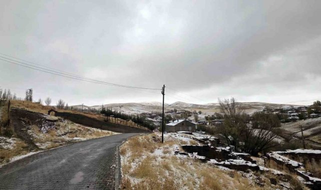 Bitlis'in Ahlat ilçesinde yüksek kesimlerdeki köyler, yağan mevsimin ilk karı ile beyaza büründü.
