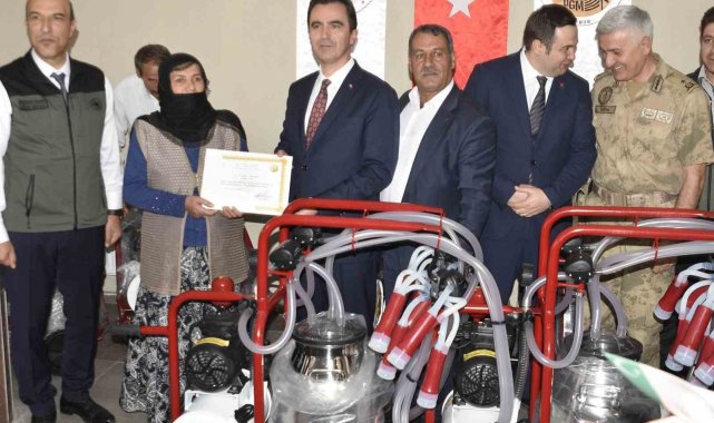 Bitlis'te, Orman Köylülerini Destekleme Projesi (ORKÖY) kapsamında 14 kadına süt sağım makinesi ve sertifikaları dağıtıldı.