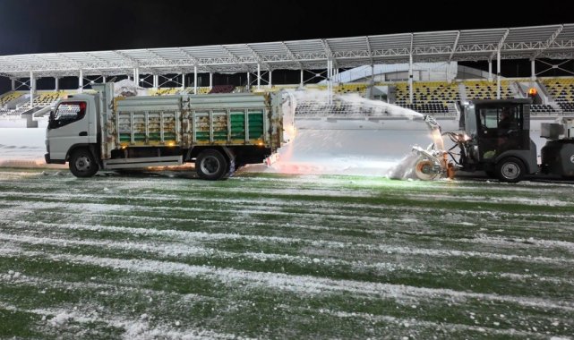 Yetkililer, zeminin korunması ve maçın planlandığı şekilde oynanabilmesi için yoğun mesai harcandığını belirtti. Çalışmaların tamamlanmasıyla birlikte stadyumun pazar günü oynanacak önemli mücadeleye hazır hale gelmesi bekleniyor.