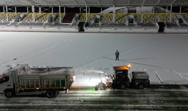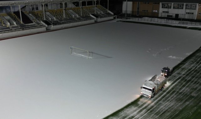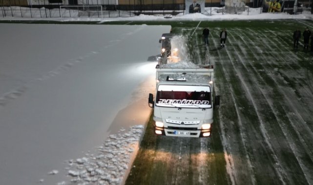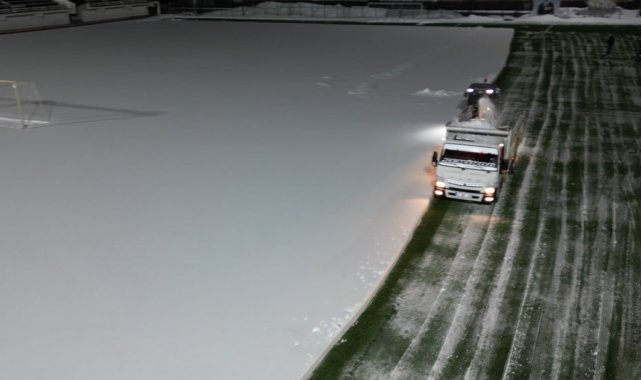 Bitlis'te futbol karşılaşmalarının aksamaması için ekipler statta kar temizleme çalışması başlattı.