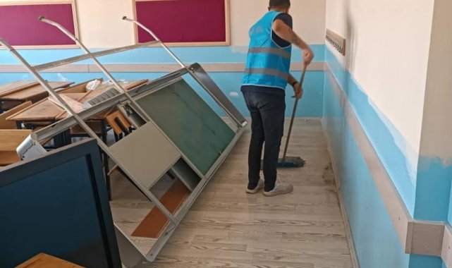 Bitlis'te denetimli serbestlik uygulamasından yararlanan yükümlüler, okulların boya, badana ve onarım işlerini yaparak öğrencilerin daha iyi bir ortamda eğitim almalarına katkı sunuyor.