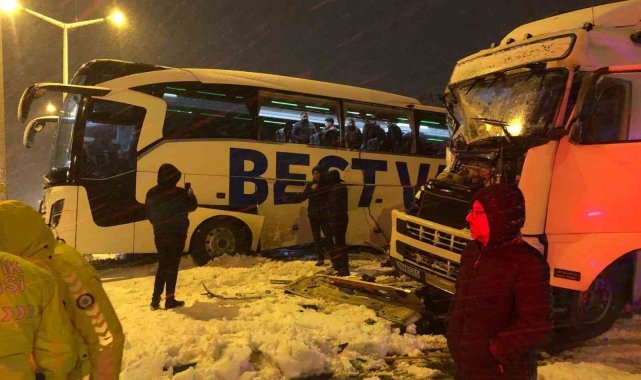 Bitlis etkili olan kar yağışı kazaları beraberinde getirdi. Tır ile yolcu otobüsünün çarpışması sonucu 2 kişi yaralandı.