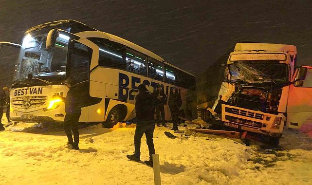 Alınan bilgiye göre kaza, sabah saat 05.00 sıralarında Bitlis-Tatvan kara yolu üzerinde meydana geldi. İran uyruklu J.G.'nin kullandığı 10 AB 585 plakalı tır, E.Ç. yönetimindeki Best Van firmasına ait 65 BJ 359 plakalı Mercedes marka yolcu otobüsüne çarptı. Çevredekilerin haber vermesi üzerine kaza yerine 112 Acil Sağlık ve polis ekipleri sevk edildi. Kazada, otobüste hafif yaralanan yolculardan 19 yaşındaki Y.B.Y. ile 32 yaşındaki E.K. Bitlis Devlet Hastanesine kaldırıldı.