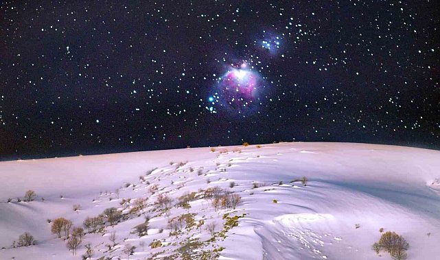 Bitlis'te karlı dağlarda eksi 4 derece soğukta gerçekleştirilen 4 saatlik çekim sonucunda, yaklaşık 1500 ışık yılı uzaklıkta bulunan Orion bulutsusu dağların zirvesiyle net şekilde görüntülendi.