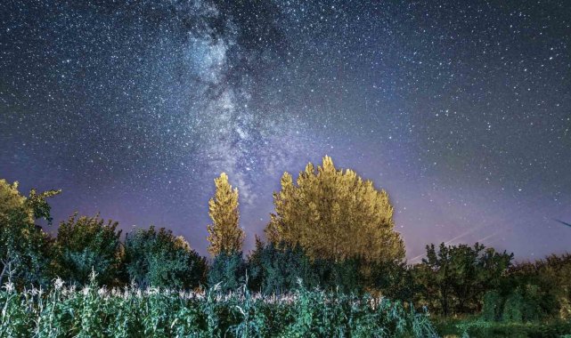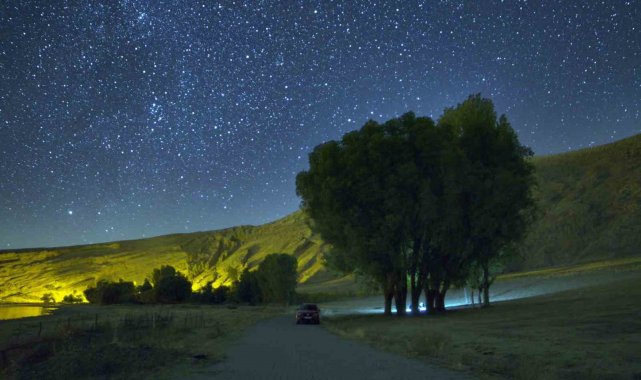 Bitlis'te sonbahar geceleri, gökyüzüyle yeryüzünün büyüsünü bir araya getiriyor.