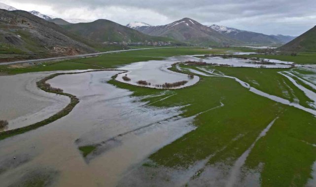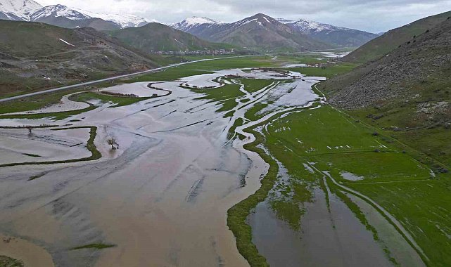 Bitlis'in Tatvan ilçesinde yer alan doğa harikası Güzeldere Menderesleri, uzun süren sağanak yağışların ardından sular altında kalarak adeta doğal bir göle dönüştü.