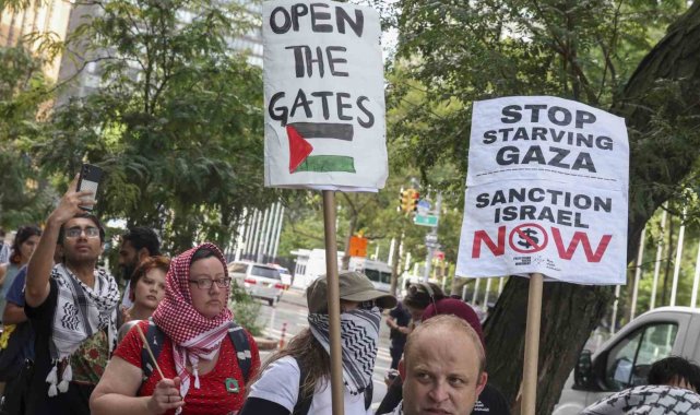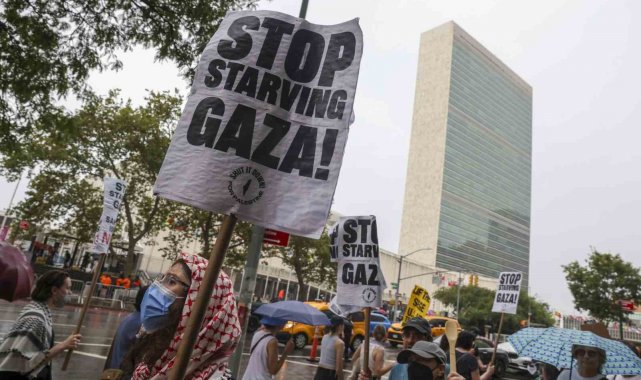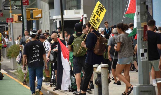 ABD'nin New York kentindeki Birleşmiş Milletler (BM) Genel Merkezi önünde toplanan çok sayıda Filistin yanlısı protestocu, kalıcı ateşkes ve insani yardım çağrısında bulunarak Gazze'deki açlığa son verilmesini istedi.