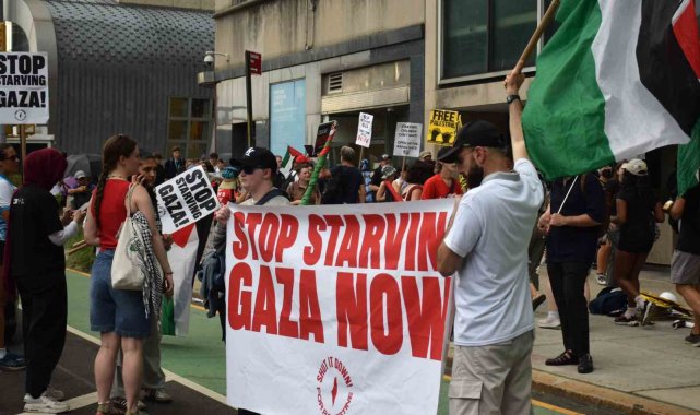 ABD'nin New York kentinde bulunan Birleşmiş Milletler New York Genel Merkezi'nde 28-30 Temmuz arasında yapılması planlanan Filistin-İsrail iki devletli çözüm görüşmeleri öncesinde toplanan yüzlerce gösterici, uluslararası topluma Gazze'de "kalıcı ateşkes" ve "acil insani yardım" çağrısı yaptı. Filistin yanlısı göstericiler, Gazze'de yaşanan kıtlığa dikkat çekerek, "İnsani yardım beklemez", "Gazze'de açlığa son", "Özgür Gazze, Özgür Filistin" yazılı pankartlar taşıdı. Göstericiler ayrıca tencere ve tavalarla ses çıkararak seslerini duyurmaya çalıştı.