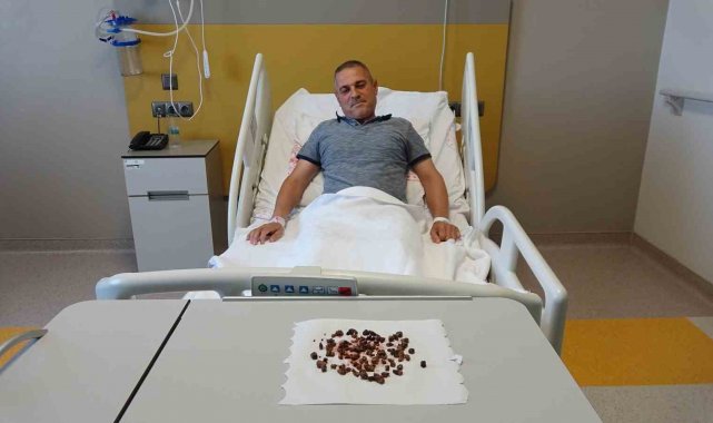Yozgat'ta yaşayan 45 yaşındaki Serhat Evran'ın böbreğinden 100'e yakın taş çıktı.