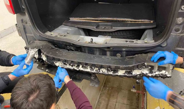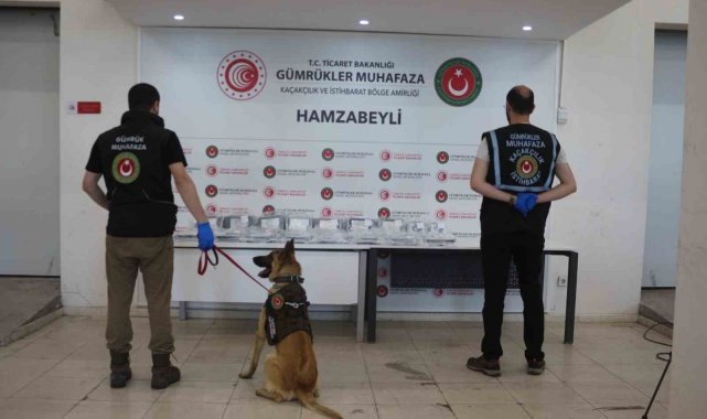 Hamzabeyli Gümrük Muhafaza Kaçakçılık ve İstihbarat Müdürlüğü ekipleri, yurda giriş yapmak üzere gelen kapalı kasa bir minibüsü şüphe üzerine X-ray taramasına sevk etti. Yapılan kontrollerde narkotik köpeği Bodri'nin tepki verdiği bölgeyi detaylı şekilde inceleyen ekipler, zemin kaplamasının altına gizlenmiş 45 kilo 823 gram kokain buldu.