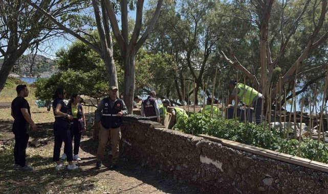 Bodrum Kaymakamlığı koordinesinde, Milli Emlak Müdürlüğü ekipleri tarafından yapılan tespit üzerine, Bodrum Belediyesi zabıta ve yıkım ekipleri ile polis ekipleri bölgeye sevk edildi. Botlarla ulaşılan alanda, yapı sahiplerine yıkım kararı tebliğ edildi.