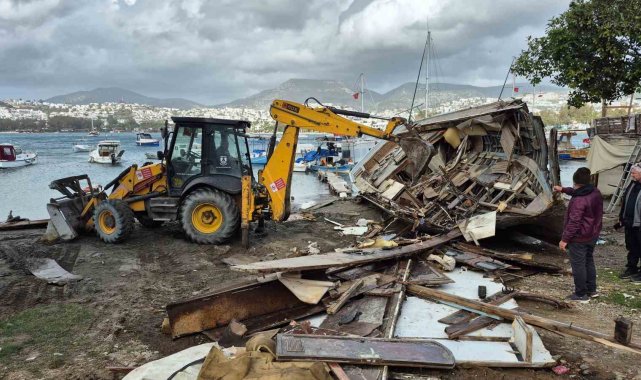 Bölgede ağır hasar almış sahipsiz tekneler ise iş makineleriyle parçalandı. Parçalanan bir teknenin altından çıkan Türk Bayrakları muhafaza altına alındı.