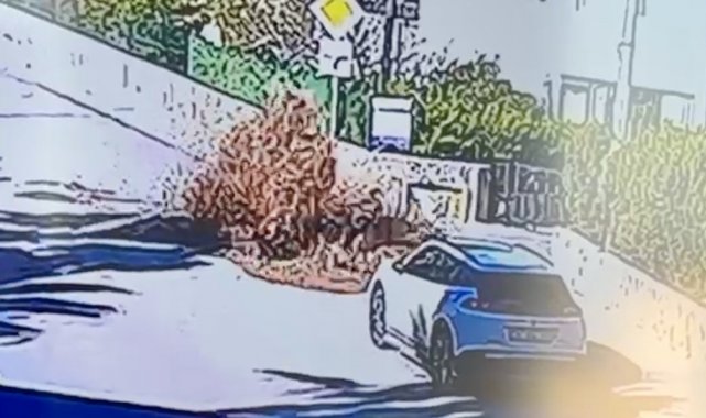 Güvenlik kamerası görüntülerinde, patlama sırasında park halindeki bir otomobildeki kişinin aracı hızla bölgeden uzaklaştırmaya çalıştığı ve çevredeki iki vatandaşın otomobile doğru koştuğu anlar yer aldı.