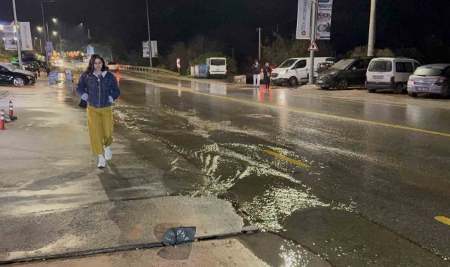Muğla'nın Bodrum ilçesine ana su isale hattının patlamasıyla yol yarıldı, derin çukurlar oluştu, tonlarca su boşa aktı.