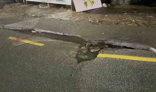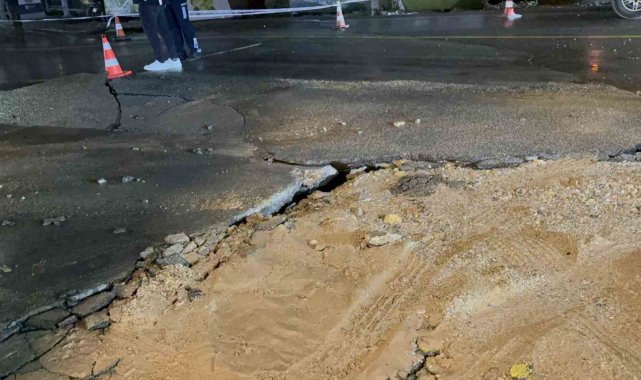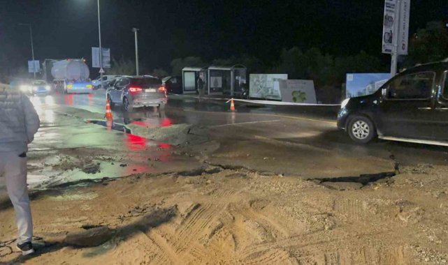 Bodrum'da ana su hattı patladı, yol çöktü