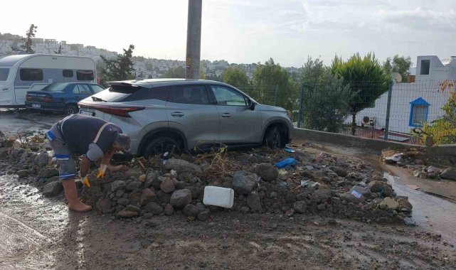 Gümüşlük-Koyunbaba yolunda etkili olan yağış nedeniyle bazı araçlar yolda mahsur kaldı, sürücüler zor anlar yaşadı. Bölgede biriken sular, trafiğin zaman zaman durma noktasına gelmesine yol açtı. Akyarlar-Turgutreis hattında ise yollar taş ve moloz yığınlarıyla kaplandı.
