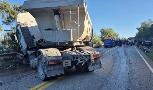 Bodrum Torba-Gölköy yolunda seyreden hafriyat TIR'ı, karşı yönden şerit ihlali yaptığı ileri sürülen otomobille kafa kafaya çarpıştı. Çarpmanın etkisiyle TIR, bariyerlere çarptı, otomobil yol kenarına savruldu. Kazada her iki aracın sürücüsü de yaralandı. Otomobilde sıkışan ve ağır şekilde yaralanan sürücü Ersin Ö. (33), itfaiye ekiplerinin çalışmalarının ardından kurtarıldı. Diğer yaralı Ali E.'nin (56) ise sağlık durumu iyi olduğu bildirildi.