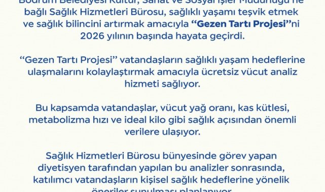 Bodrum Belediyesi, sağlıklı yaşamı teşvik etmek ve vatandaşların sağlık bilincini artırmak amacıyla 'Gezen Tartı Projesi'ni hayata geçirdi.