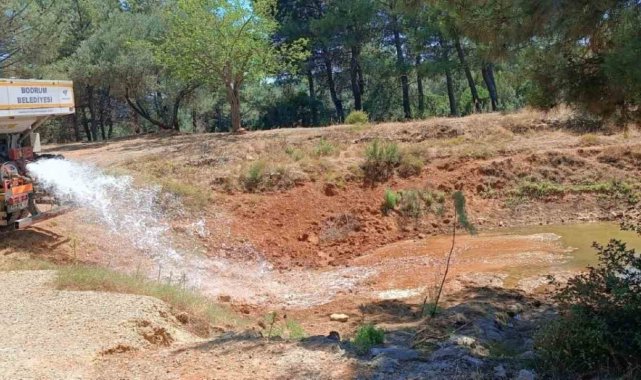 Bodrum Belediyesi, kırsal bölgelerde kuruma riski taşıyan göletlere su takviyesi gerçekleştiriyor.
