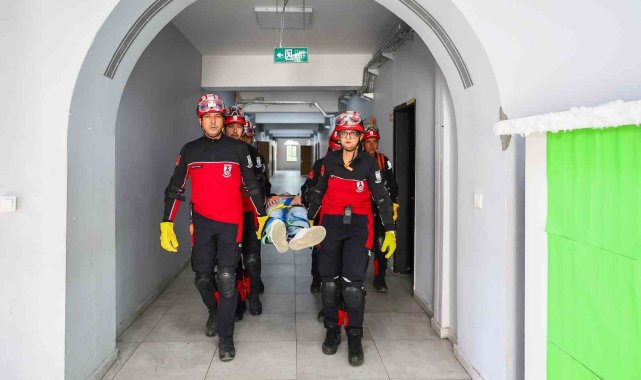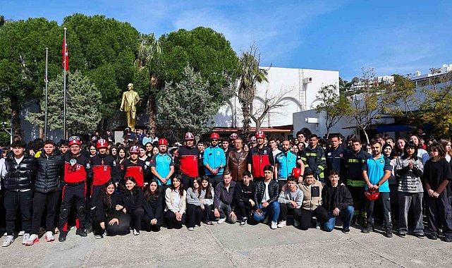 Muğla'nın Bodrum ilçesinde, 1-7 Mart Deprem Haftası kapsamında Kanuni Sultan Süleyman Anadolu Lisesi'nde deprem tatbikatı gerçekleştirildi. Sirenlerin çalmasıyla başlayan tatbikatta öğrenciler sınıflarında "çök-kapan-tutun" yöntemini uygularken, senaryo gereği yaralanan öğrencilere UMKE ekipleri müdahale etti.