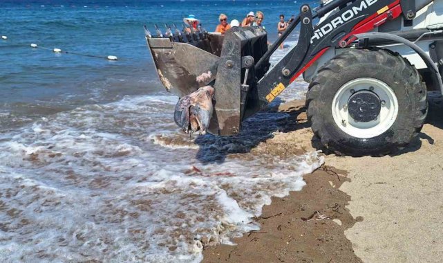 Muğla'nın Bodrum ilçesinde karaya vuran ölü yunus yerli yabancı turistlere şok etti. Yunus belediye ekiplerince bölgeden kaldırıldı.