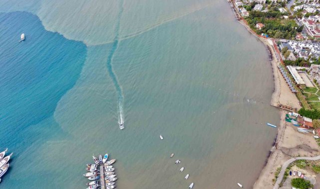 Çamur yüklü akıntının denize karışmasıyla kıyı şeridinde adeta iki farklı renk ortaya çıktı. Denizin bir bölümü masmavi kalırken, diğer bölümü çamurun etkisiyle koyu kahverengiye döndü. Dron ile kaydedilen görüntülerde renk ayrımının keskin bir çizgi halinde ilerlediği görülürken, vatandaşlar bu manzarayı şaşkınlıkla izledi. Yoğun yağışın ardından Bodrum Kaymakamlığı, Bodrum Belediyesi, emniyet güçleri ve jandarma teyakkuza geçti. Belediye ekipleri taşan derelerin sürüklediği çamur ve malzemeleri hızla temizlerken, emniyet güçleri trafik akışını kontrol altına aldı. Bodrum Kaymakamı Ali Sırmalı ise ilçede muhtemel bir sel baskınına karşı tüm ekipleri seferber ederek bölgede teyakkuz durumunu sürdürdü. Öte yandan, son 6 saat içinde metrekareye 22.6 kilogram yağış düştüğü öğrenildi.