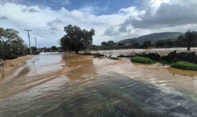 Muğla'nın Bodrum ilçesinde etkili olan sağanak yağmur nedeniyle yollar kapandı, iş yerlerini su bastı.