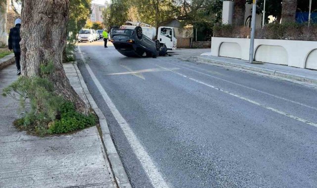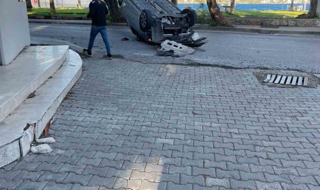 Bodrum'un Yalıkavak Mahallesi'nde sabah saatlerinde meydana gelen trafik kazasında, kontrolden çıkan otomobil takla atarak ters dönerken, sürücü kazayı yara almadan atlattı.