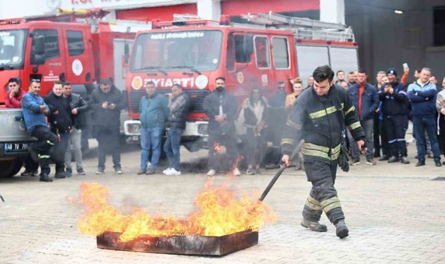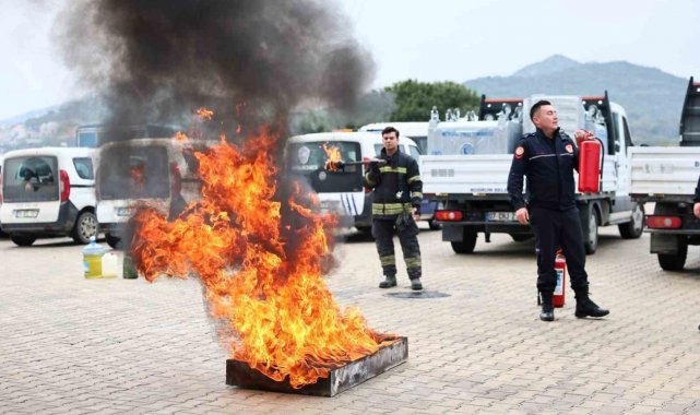 Muğla Büyükşehir Belediyesi İtfaiye Grup Amirliği ekiplerinin sunumuyla başlayan programda, teorik bilgilendirmelerin ardından personele yangın söndürme teknikleri uygulamalı olarak gösterildi.