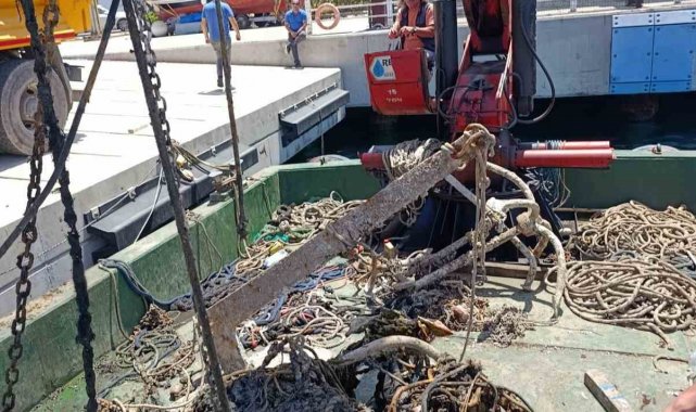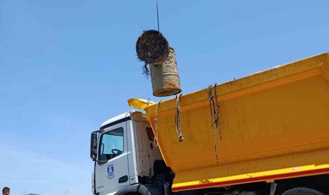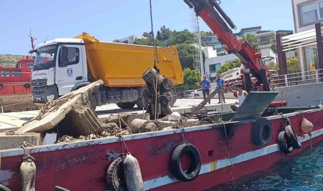 Muğla'nın Bodrum ilçesinde tonoz olarak kullanılan 30 ton atık daha denizden çıkarıldı.