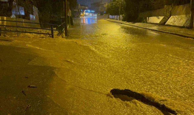 Muğla'nın Bodrum ilçesinde etkili olan sağanak yağış yolları göle çevirdi, dereler taştı, evleri su bastı.