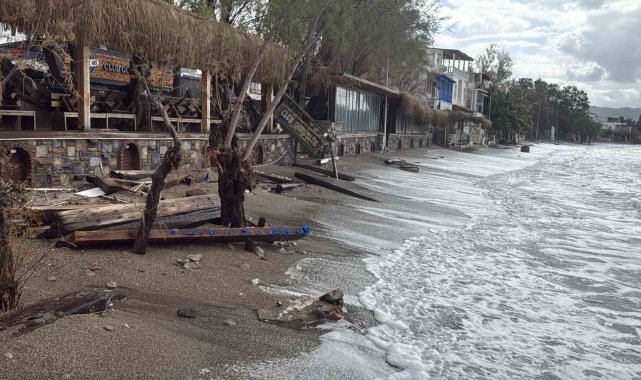 Sahil boyunca dükkan camları tuzla buz oldu, ahşap platformlar parçalandı. Çatılardaki tenteler yerinden koparak savrulurken, masa ve sandalyeler yollara dağıldı. Yaz sezonunda turistlerin önünde fotoğraf çektirdiği sembolik ağaç ise kökünden devrildi. Gece boyunca yükselen dalgalar kıyı şeridini aşarak bazı işletmeleri su altında bıraktı. İşletmelerin önü kumla kaplanırken, sabah saatlerinde esnaf kendi imkanlarıyla temizlik ve kum tahliye çalışması başlattı. Çok sayıda işletmede ciddi maddi hasar meydana geldi.