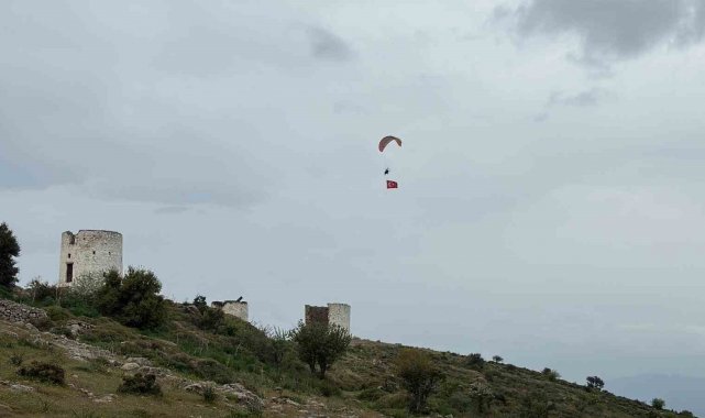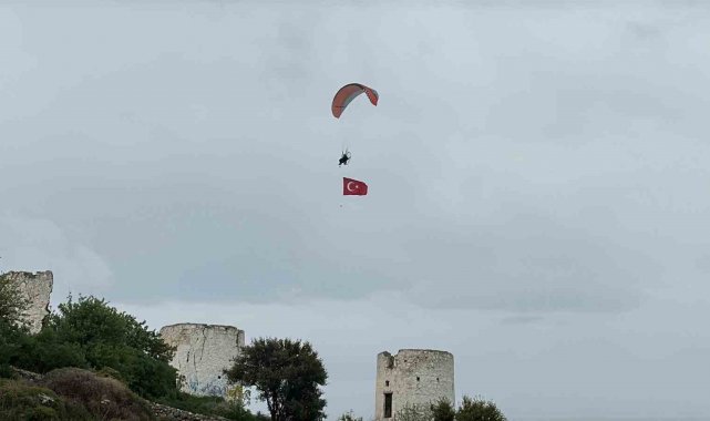 Bodrum'da yaşayan yamaç paraşütü ve paramotor pilotu Seyfi Çağlar Özgül, Çanakkale Deniz Zaferi'nin 111'inci yılı kapsamında anlamlı bir etkinliğe imza attı. Gümbet Değirmenler mevkisinde hazırlıklarını tamamlayan Özgül, paramotoruna bağladığı Türk bayrağıyla havalandı. Yaklaşık 45 dakika süren uçuşta Bodrum Kalesi, Kumbahçe ve Gümbet hattında süzülen Özgül, gökyüzünde açtığı dev bayrakla görsel şölen sundu. Sahil şeridinde bulunan çok sayıda kişi, o anları cep telefonlarıyla kayda aldı.