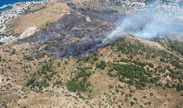 Türkbükü Mezarlık üst tarafındaki makilik alanda öğle saatlerinde başlayan yangın rüzgarın da etkisi ile büyürken bölgeye takviye hava araçları gönderildi. Yangına havadan 3 uçak ve 5 helikopter, karadan ise 10 arazöz, su tankeri ve 60 personel müdahale ediyor.