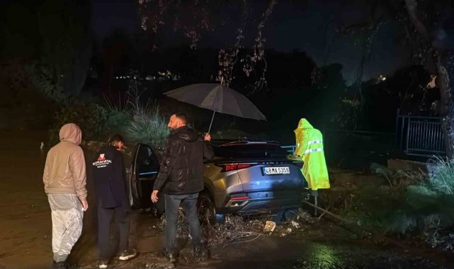 Muğla'nın Bodrum ilçesinde akşam saatlerinde etkisini artıran sağanak nedeniyle cadde ve sokaklar göle dönerken, bir araç sel sularında sürüklendi, 7 evi su bastı.