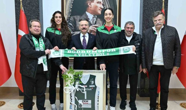 Vali Aksoy, kendisine Bodrumspor Kadın Voleybol Takımı forması ve atkısı hediye eden takım kaptanları Şeyma Dilan Öztürk ve Nehil Kiraz'a teşekkür ederek, oynayacakları müsabaka ve sezonun geri kalanında başarılar diledi.