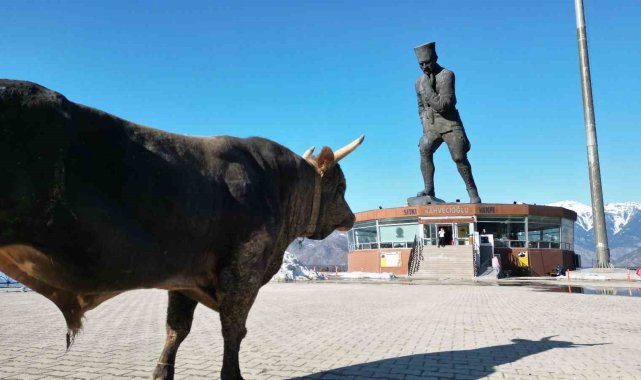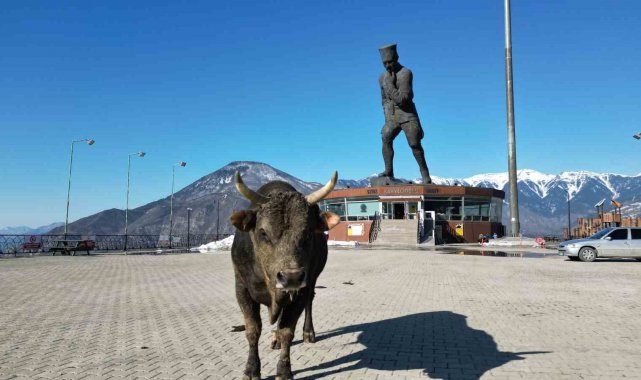 Barış Yazganoğlu ise bakıcılığını üstlendiği 650 kiloluk 'Kaçkar' isimli boğayı, şehrin önemli turizm merkezlerinde güreşlere hazırlıyor.