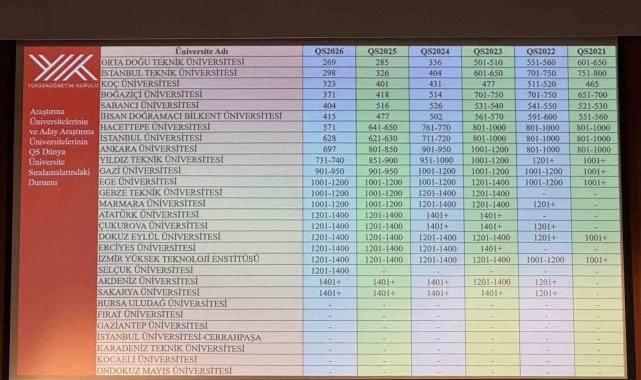 Tüm araştırma üniversitelerinin ilk 800 - 1000 bandını hedeflemesinin gerektiğini söyleyen Özvar, "Yükseköğretim Kurulu olarak, daha önce de defaatle ifade ettiğim üzere, yükseköğretim sistemimizin lokomotifi olarak gördüğümüz araştırma üniversitelerimizin uluslararası alanda daha görünür olmalarını arzu ediyoruz. Son yıllarda başta araştırma üniversitelerimiz olmak üzere, üniversitelerimizin uluslararası sıralamalarda istikrarlı bir şekilde yükselişe geçmiş olmalarını memnuniyetle karşılıyor ve destekliyoruz. Ancak bu sıralamalarda bazı araştırma üniversitelerimizin yükselen performansı yanında diğer bazı araştırma üniversitelerimizin beklenen performansı gösteremediklerine de maalesef şahit oluyoruz. Malumunuz olduğu üzere, 12. Kalkınma Planı'nda yer alan yükseköğretimle ilgili hedeflerimizden birisi de Dünya Akademik Başarı Sıralamalarında ilk 500'de yer alan üniversite sayımızın, 2028 yılında 10'a çıkarılması olarak belirlenmiştir. İnşallah bu plan döneminin sonunda bu hedefe hep birlikte ulaşacağız. Araştırma üniversitelerimizin tamamının, fiziksel altyapıları ve sahip oldukları akademik insan kaynağı ile önümüzdeki 5 yılda ilk 500 içerisinde yer alma potansiyeline sahip olduklarına inanıyorum. Bu konuda daha fazla gayret göstermenizi sizlerden istirham ediyorum. Biz Yükseköğretim Kurulu olarak bundan sonra da bu konuda sizlere her türlü katkıyı vermeye devam edeceğiz. Tüm araştırma üniversitelerimizden ilk 800 - 1000 bandını hedeflemesi lazım. Birkaç sene içinde uluslararası sıralamalarda ilk 100'e girecek aday üniversitelerimiz var" ifadelerini kullandı.
