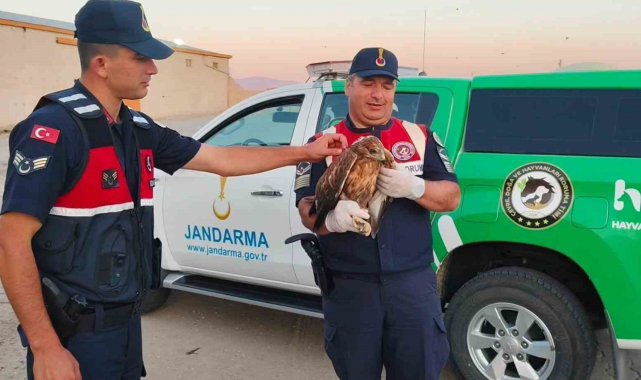 Yozgat İl Jandarma Komutanlığı Çevre Doğa ve Hayvanları Koruma Timi (HAYDİ) ve Boğazlıyan İlçe Jandarma Komutanlığı ekiplerinin, Boğazlıyan ilçesine bağlı Yenipazar mevkiinde devriye görevi esnasında doğada yaralı şahin bulundu.
