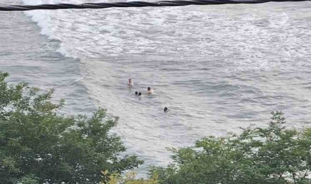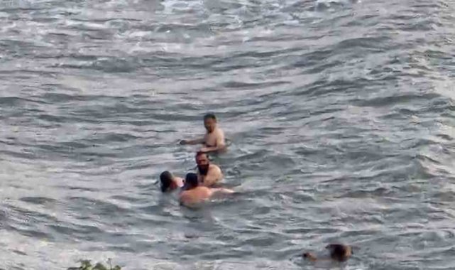 Zonguldak'ın Alaplı ilçesi Cennet Koyu sahilinde denizde boğulma tehlikesi geçiren 3 kadın, can simidi ve oluşturulan insan zinciriyle kurtarıldı. O anlar cep telefonuyla kaydedildi.