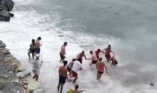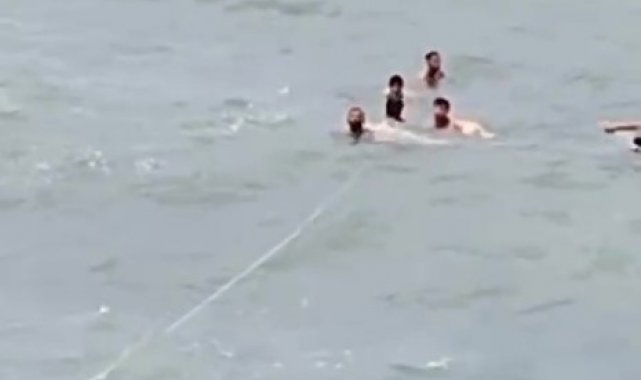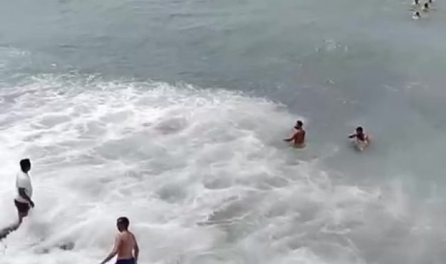 Antalya'da denizde boğulma tehlikesi geçiren genç için vatandaşlar seferber oldu. Dalgaların arasında yaşam mücadelesi veren genç, atılan can simidi ve oluşturulan insan zinciriyle kurtarıldı. O anlar cep telefonuyla kaydedildi.