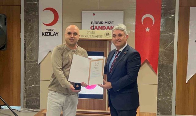 İstanbul Bölge Adliye Mahkemesi'nde Türk Kızılay'a kan bağışında bulunan adliye personeline plaket verildi.