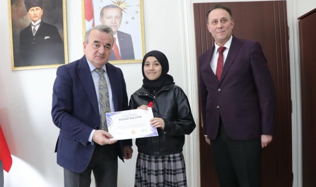 Bölge birincisi öğrenciye Kaymakam Öztürk'ten tebrik